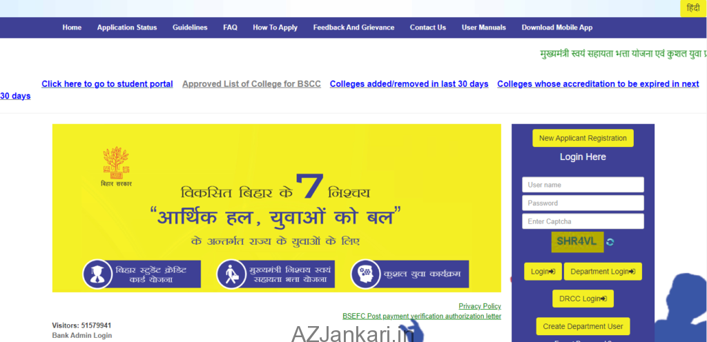 - ईमेल और एसएमएस द्वारा प्राप्त किये गए उपयोगकर्ता नाम और पासवर्ड का उपयोग करके आधिकारिक होमपेज पर जाएं।