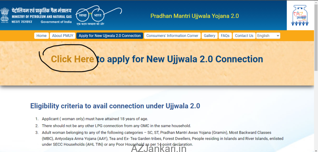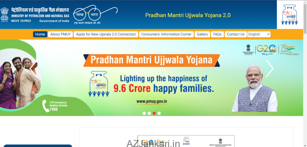 - प्रधानमंत्री उज्ज्वला योजना (PMUY) की आधिकारिक वेबसाइट www.pmuy.gov.in पर जाएं।