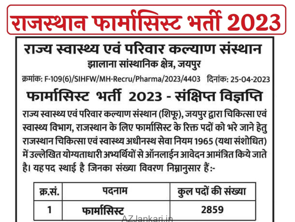 Rajasthan Pharmacist Recruitment 2023 – 2859 पदों पर आवेदन 5 मई से शुरू