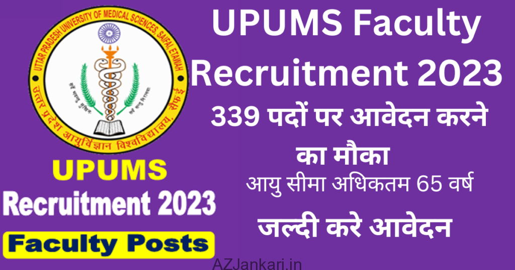 UPUMS Faculty Recruitment 2023:339 स्थानों पर अवसर,आवेदन करें और नया संघर्ष जीतें! UPUMS Faculty Vacancy 2023